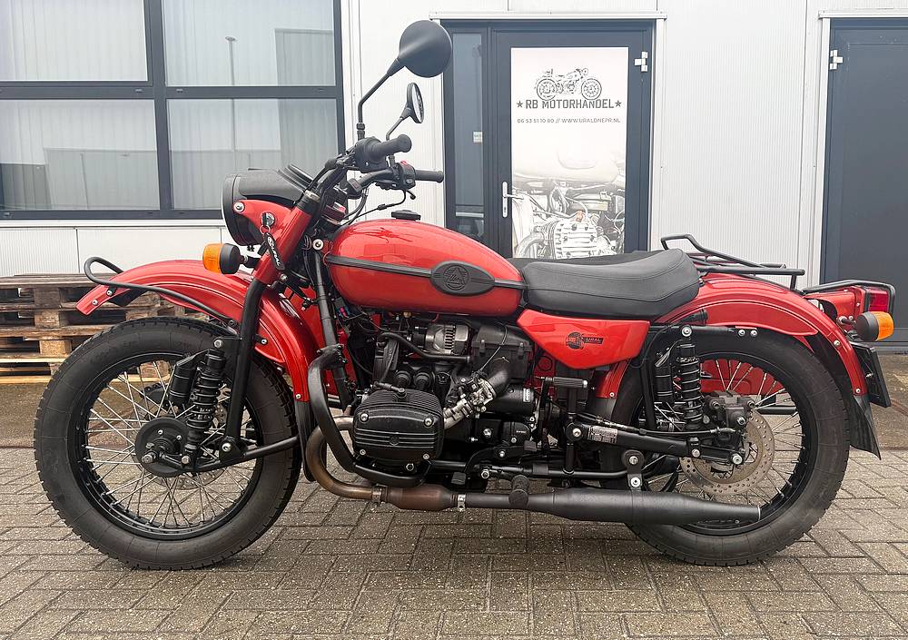 Ural T twd met aangedreven zijspan en Nederlands kenteken.